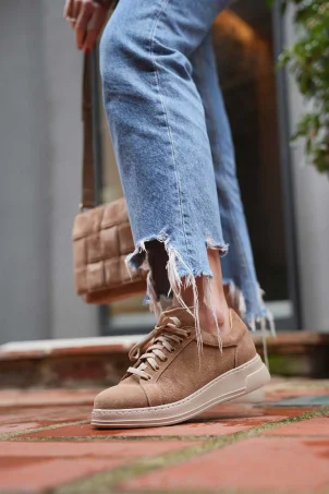 SKS-057 Bej Nubuk Kadın Ayakkabı
